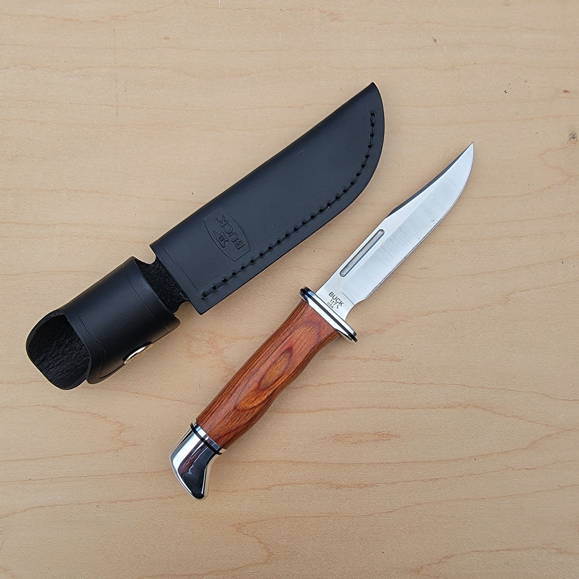 The Buck 117 Brahma is like a mini Buck 119 Special, a smaller companion on any hunting or outdoors trip. The blade is full tang construction, and has a finger guard, comfortable handle and a deep choil.