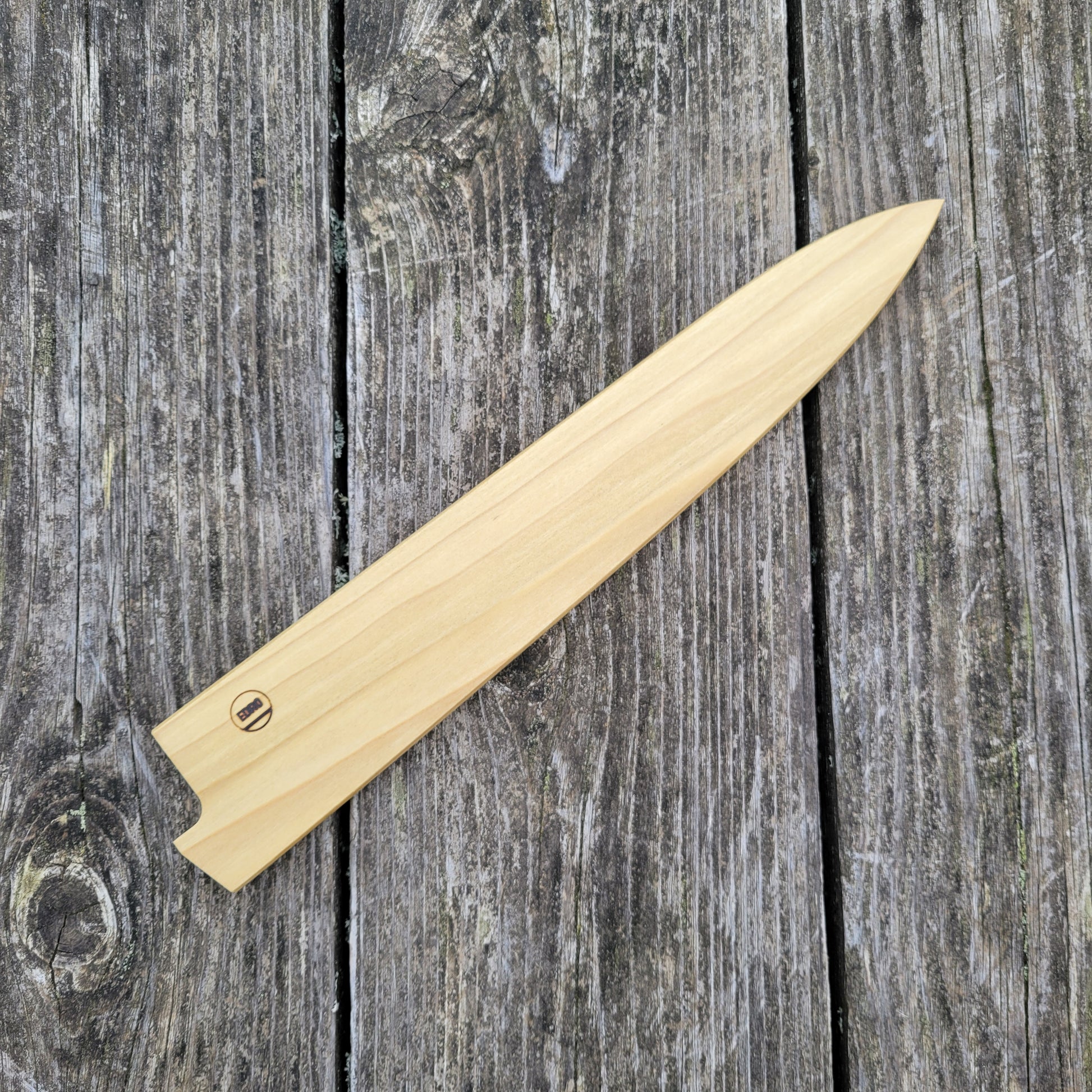 **READ THIS: All saya sales are FINAL. Please double check your knife sizes before purchase. If purchased with a knife, we will make sure it fits before shipment. Knife types and sizes vary from maker to maker and saya are designed to fit most Japanese knives without a bolster. These will not fit most Western knives with bolsters. We cannot guarantee they will fit your knife.**