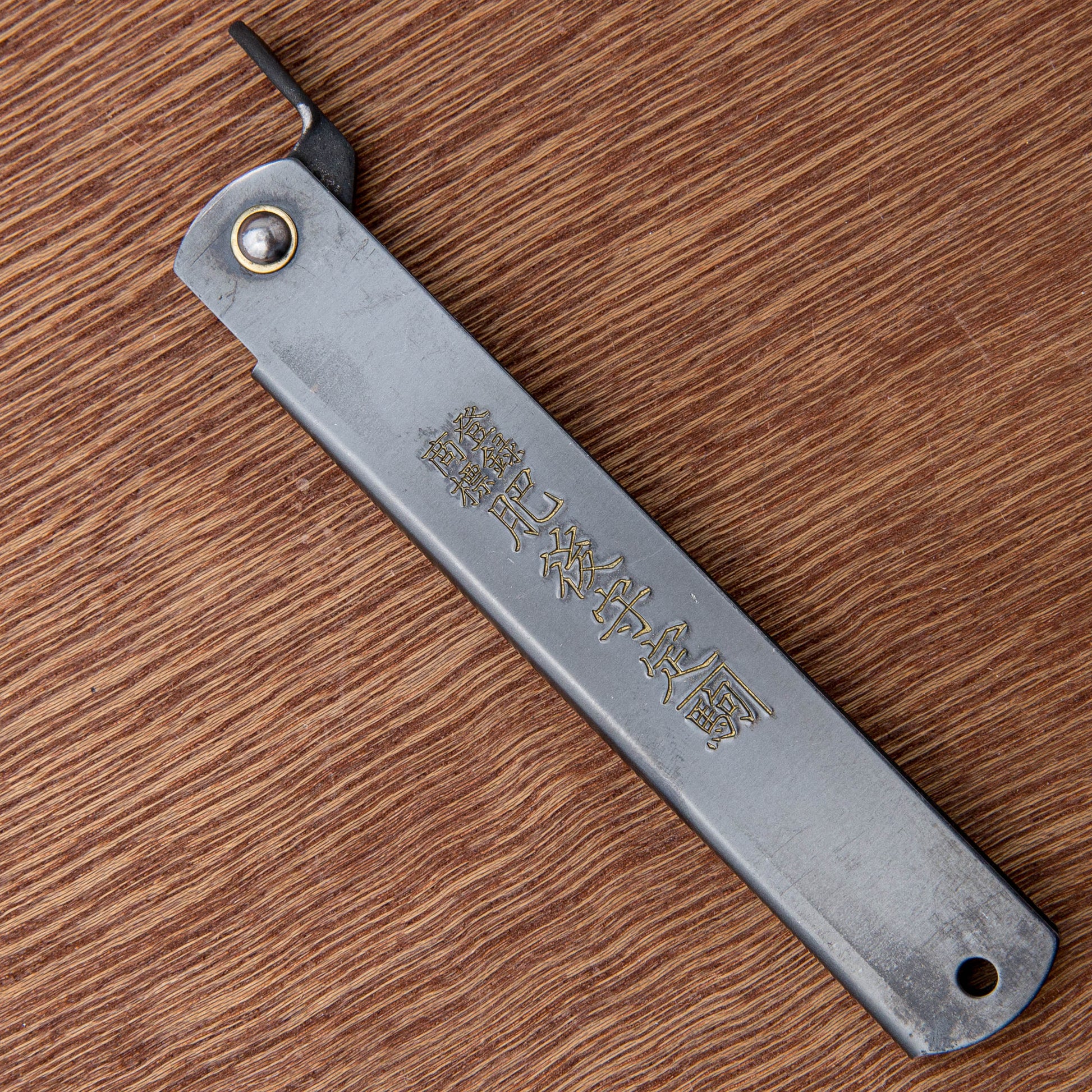 A simple Japanese design with drop point. Blade is ground flat similar to Scandinavian knives. Three layer laminated sk carbon steel blade holds a great edge and is tough. Made in Japan.