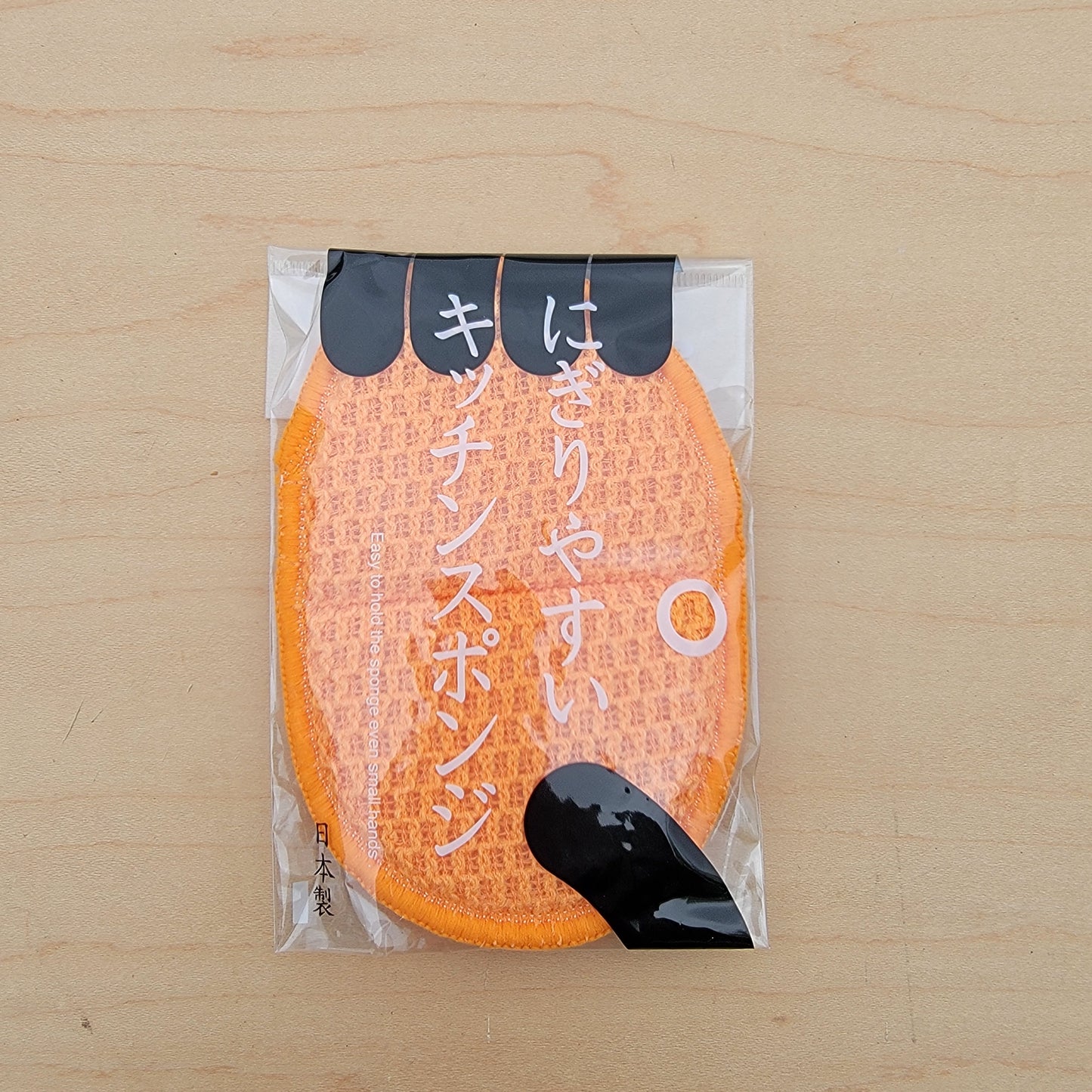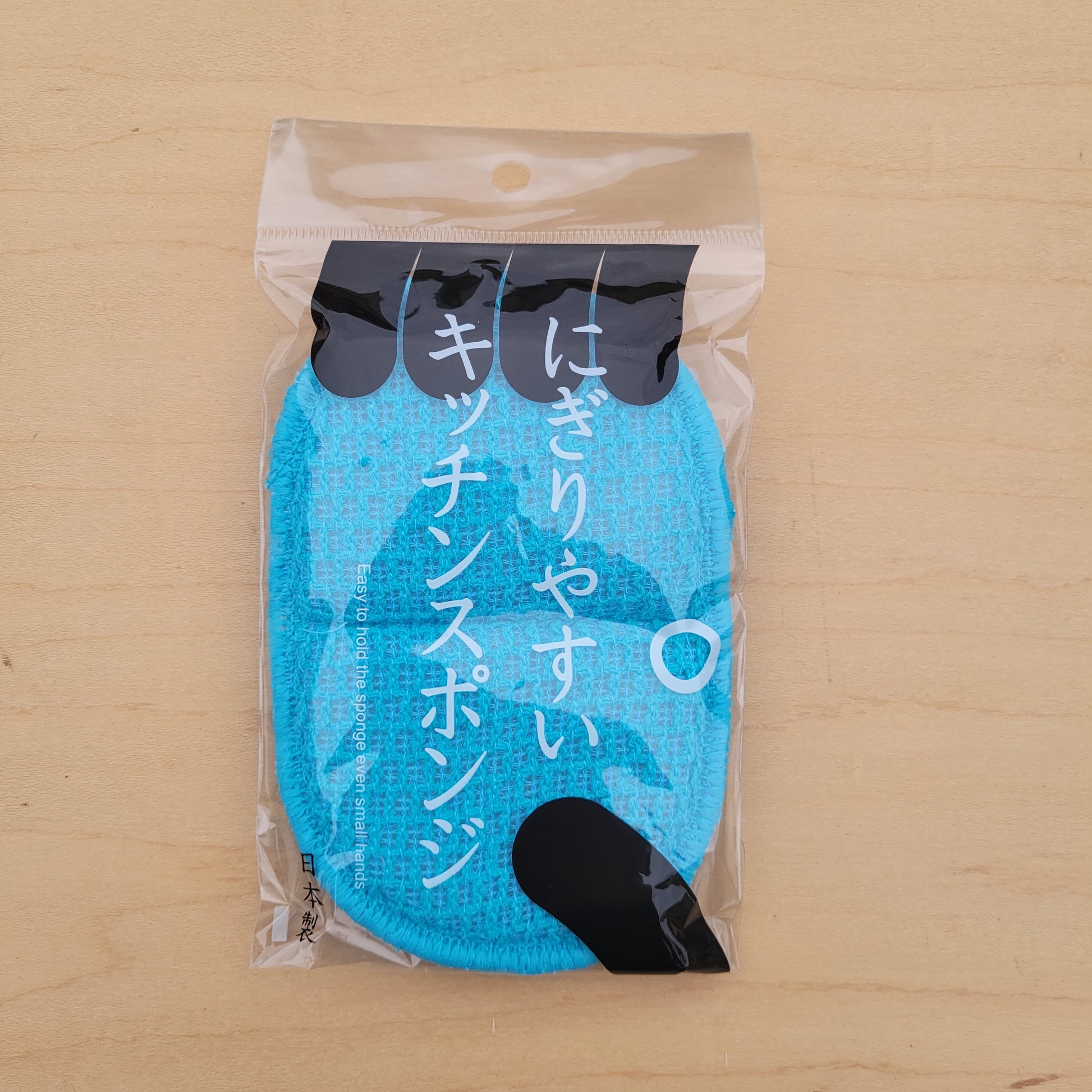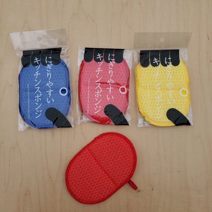 Dish sponge with with a soft and hard side, non-scratching, great for silverware and cutlery, with a hang loop.