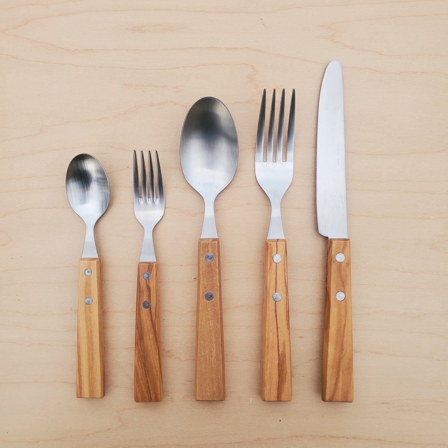 These utensils would be at home at any kitchen table as well as for camping or picnics. The olive wood handles have a warm and comfortable feel in hand! They are made in TsubameSanjo, a city in Japan well known for making high quality dinner and table wares.