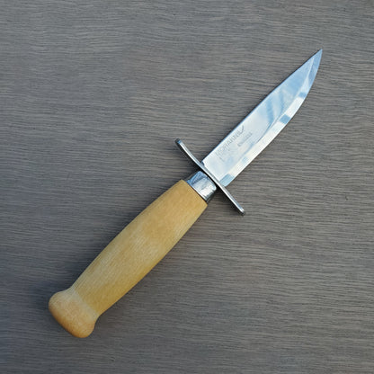 The Morakniv Scout 39 is everything a larger Mora is, but in a small, kid friendly size, and with great color options as well. The blades are stainless steel, and they come with a natural leather belt sheath with snap for extra security. These knives are a great way to introduce kids to whittling, camping and outdoor crafts.