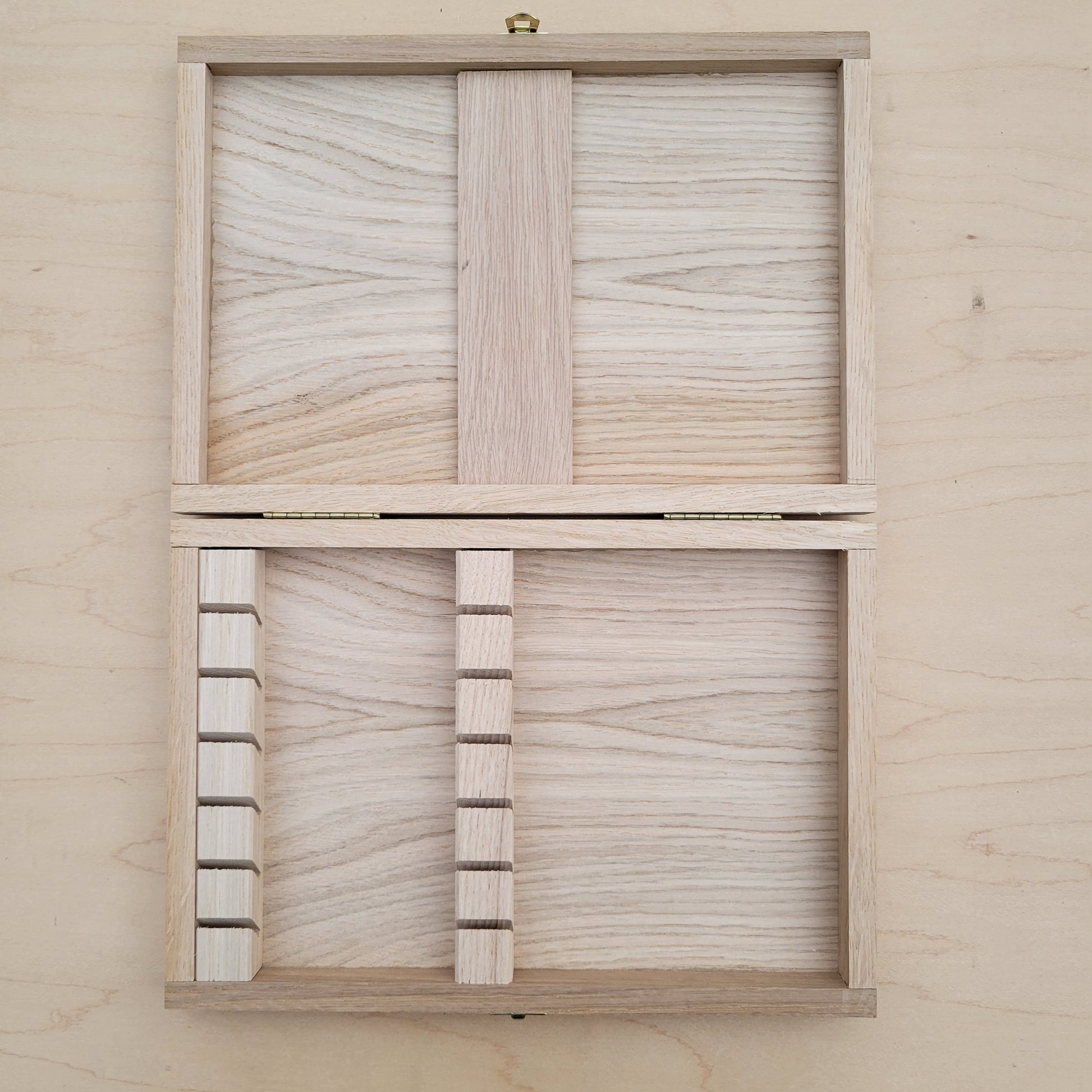 Oak wood box for 6 knives, fits most Opinel steak knife styles.