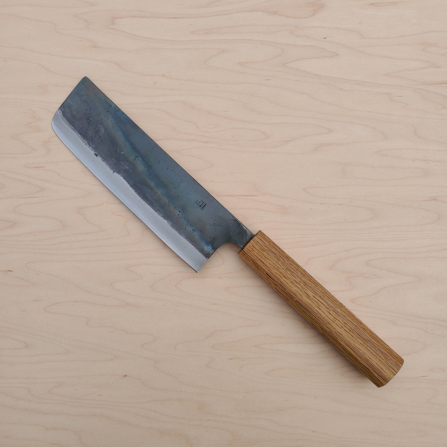 Forged in Tosa, Japan. These rustic handmade knives are a great starting point for anyone wanting to get into sharpening and maintaining their own knives on whetstones. Out of the box, they have 'workhorse' style grinds and fairly rough fit and finish. For some folks, that's fine! They are meant to be affordable tools, and that means some finishing steps that are typically done on higher end cutlery won't be done on these. Regardless, they are forged with top quality Hitachi made Shirogami #1 (White Steel #1), which is a pure carbon steel with a high carbon content, making for an easy to sharpen knife that has great edge life too. They are handled with really nice octagon shaped oak wood handles.