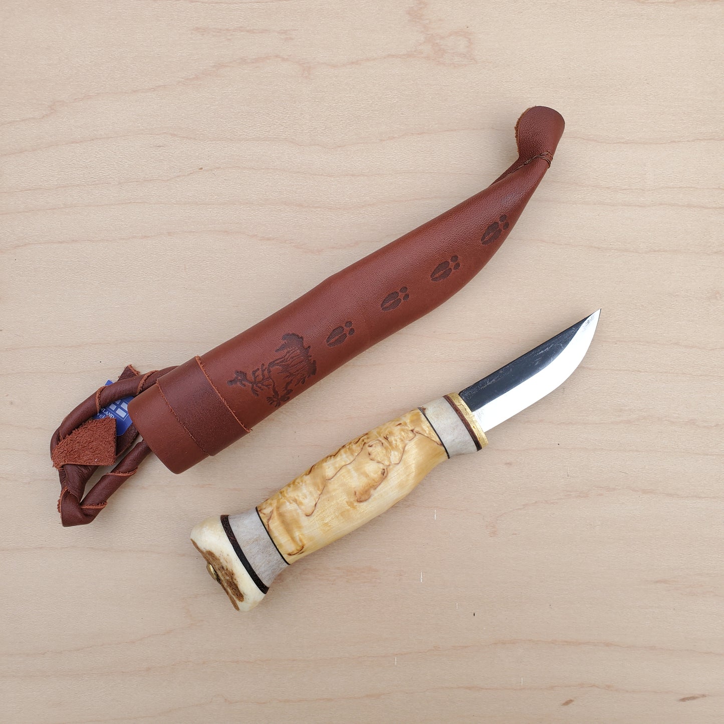 Wood Jewel knives are made in Finland, in the traditional style, and come with leather belt sheaths.